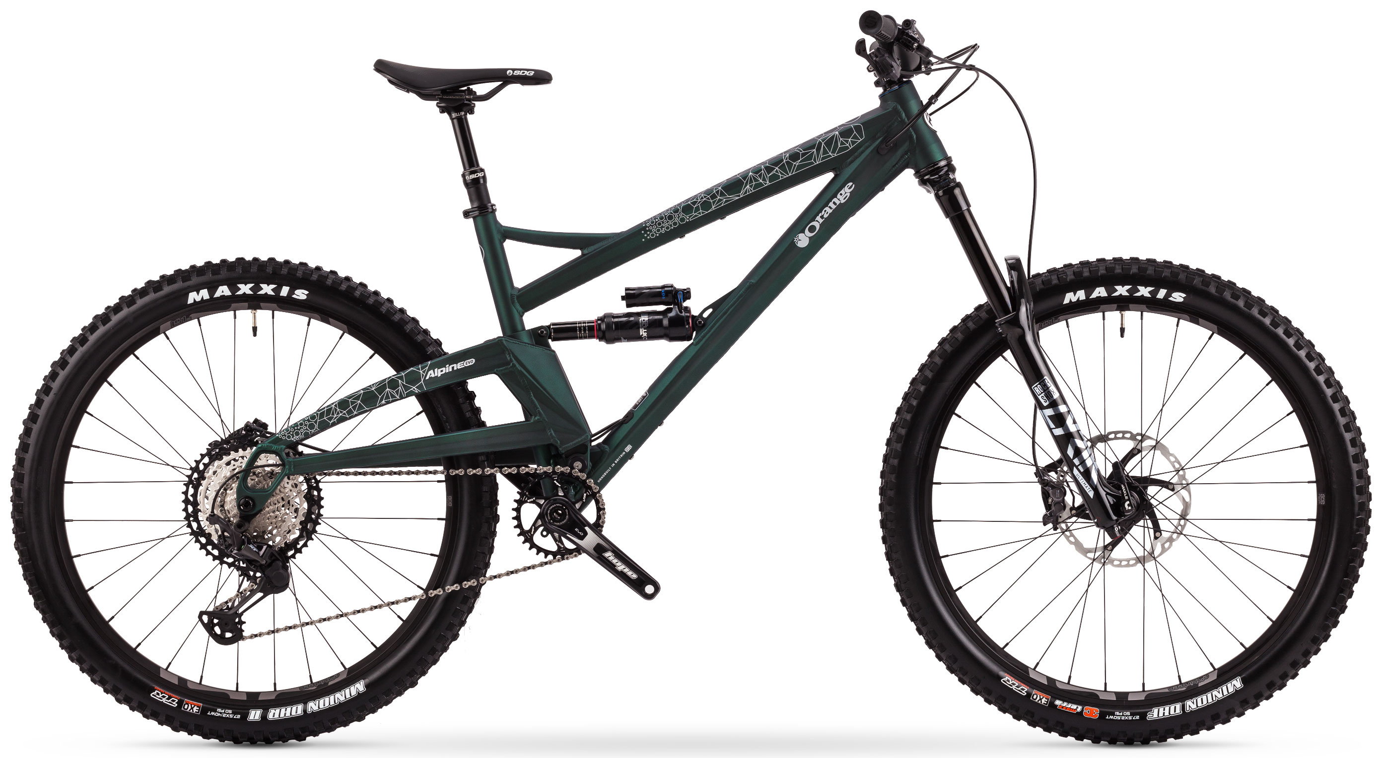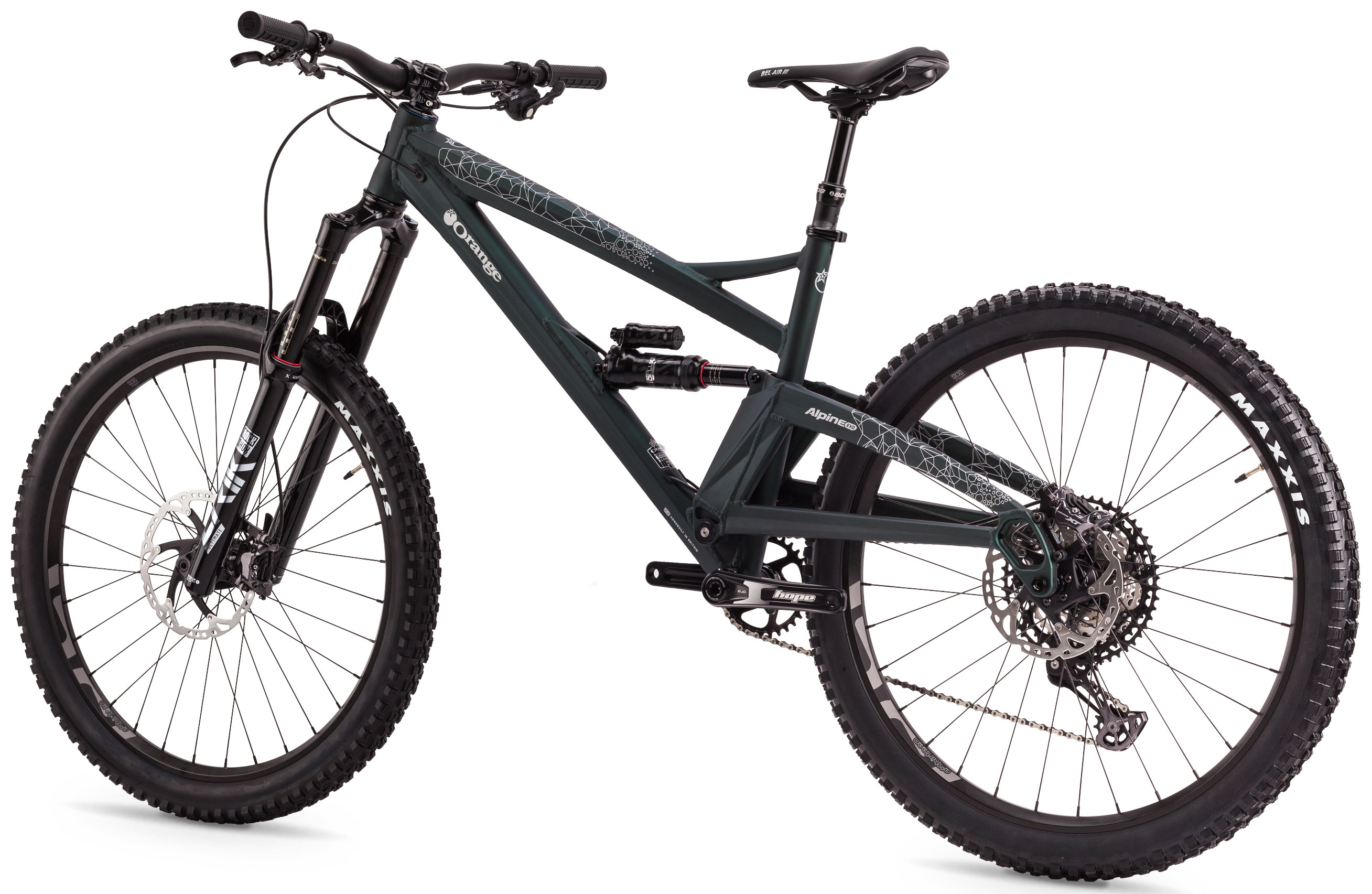 The signature Orange Evo geometry with its longer swingarm, steeper seat tube angle and roomier front centre all lead to a longer wheel base and stability at speed. The Alpine Evo has an eagerness to jump and pop but doesn’t shy away from steep technically terrain.