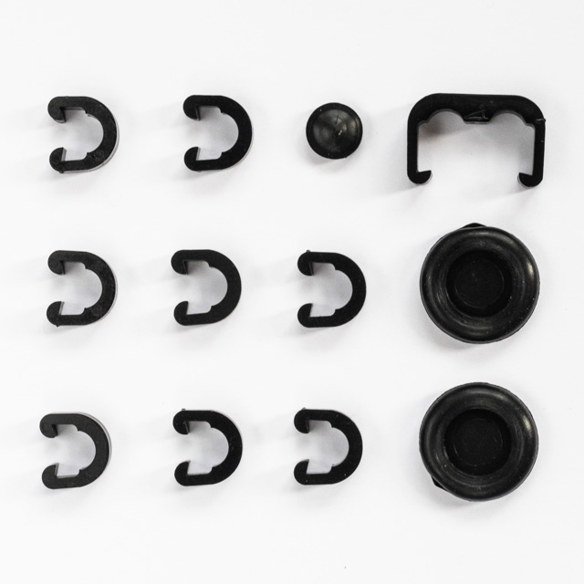 This is a complete kit with all the clips and grommets needed for 2014-16 Fives. This kit ncludes: 2 cable grommets, 8 u-clips, 1 double clip and a downtube gusset grommet.