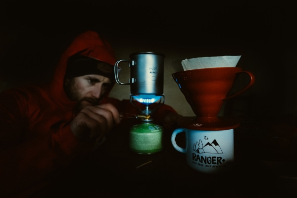 It wasn't long before we were running out of light, so we made a quick dash back to the bothy and the fire was soon made. Toby was excited to make everyone a well earned brew after a big day out in the hills.